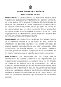 Nota aclaratoria de la aduana de Cuba sobre la importacion de cocinas al pais. Aclaracion de la Resolución No. 143 del 2013